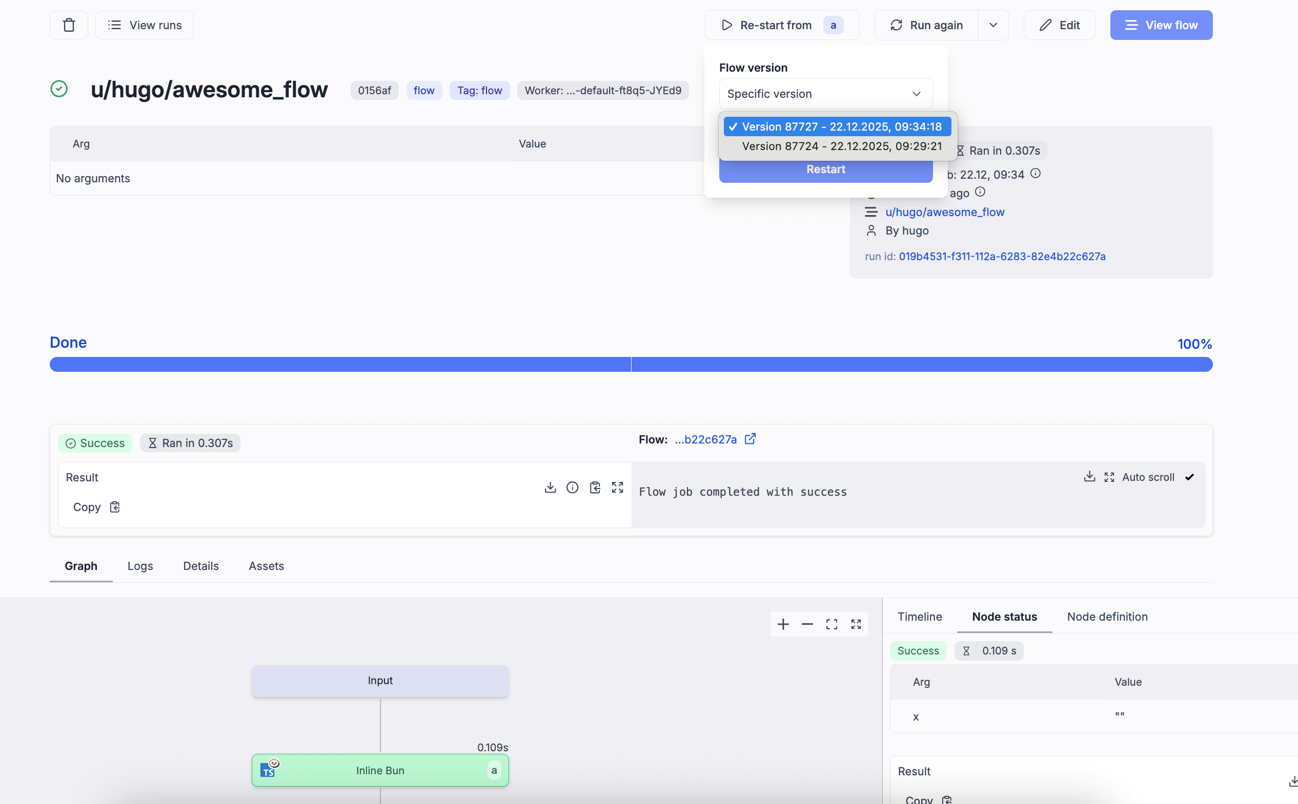 - Select any deployed flow version when restarting