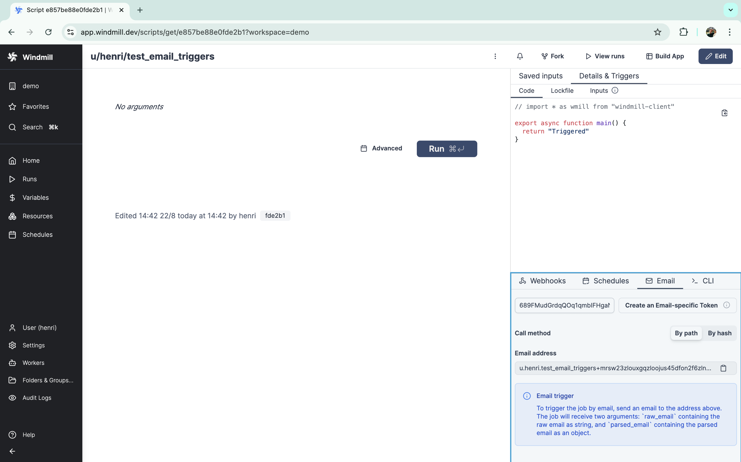 - Trigger scripts with @Windmill in public channels, private channels, DMs, and threads